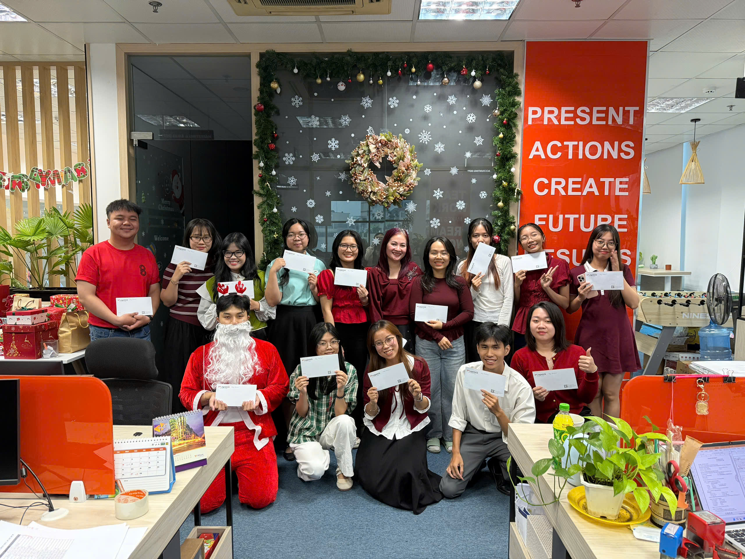 Christmas has arrived, bringing sparkling lights, gentle melodies, and an atmosphere filled with love, peace, and joy. These days, the office at 3P Logistics feels warmer than ever as every corner is beautifully decorated in the festive colors of red, green, and white. The bright ornaments, twinkling lights, and cozy decorations create a truly magical holiday spirit throughout the workplace.